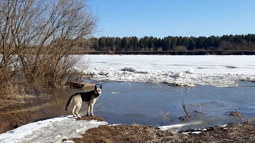 Пес Дарик - купательная собака. Лезет в ледяную реку.mp4