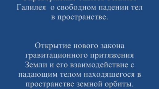 Опровержение опытов Галилео Галилея о свободном падении тел в пространстве.