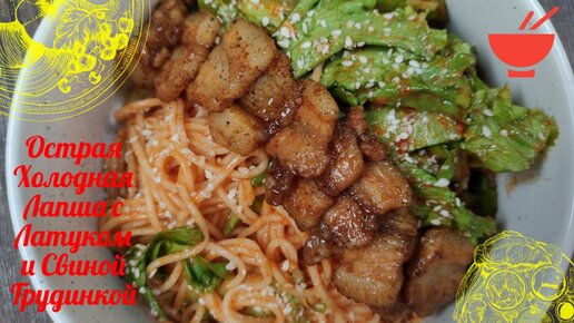 Острая Холодная Лапша с Латук Салатом и Свиной Грудинкой Рецепт
