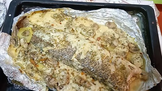 Запеченная щука в духовке с картофельной начинкой грибами и с сыром🍄🥔🧀
