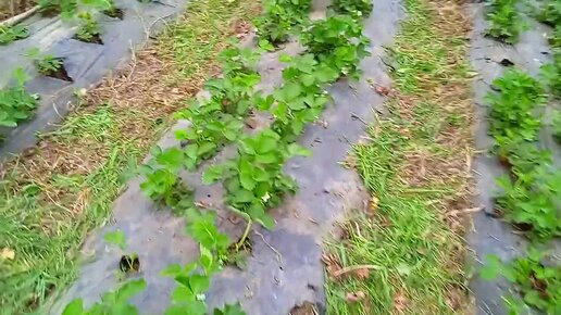 Вся клубника очищена от травы. Цветение и Вегетация.