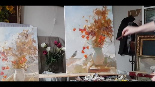 Натюрморт с воробьем. Живопись маслом.