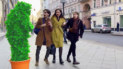 Человек куст снова пугает прохожих, пранк! Крики и смех!