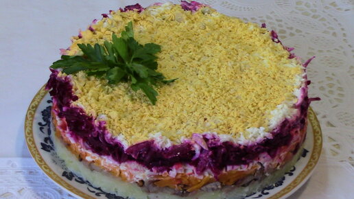 Сельдь под шубой с крабовыми палочками.