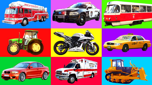 Далее: Мультики про Машинки для детей. Изучаем транспорт и звуки: Пожарная машина Скорая помощь Джип Такси