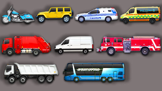 Мультик про машинки для детей. Виды транспорта: Мусоровоз Грузовик Пожарка Автобус Скорая