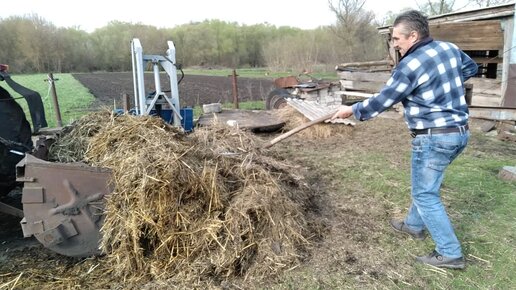 Уборка территории вывозим остатки гнилой соломы на МТЗ 82 с ковшом