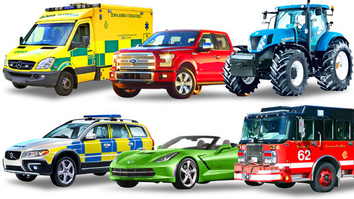 Мультик про машинки для детей. Виды транспорта: Скорая Трактор Пожарка Полиция Кабриолет