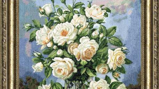 20 ВЫШИВКА КРЕСТОМ БУКЕТ БЕЛЫХ РОЗ
