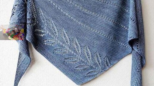 Треугольная шаль бактус с узором Листья.Часть №1