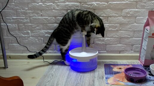 Автопоилка для кошек. Как приучить котенка пить воду? Смешной котенок играет с водой.