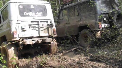 мощный замес на уазах!!! уаз с мотором газ53 ,уаз на тракторах.