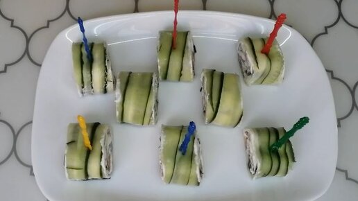 Роллы с семгой и сливочным сыром в огуречной обертке
