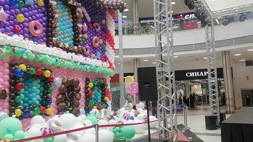 Домик из воздушных шариков в ТЦ в Новосибирске.