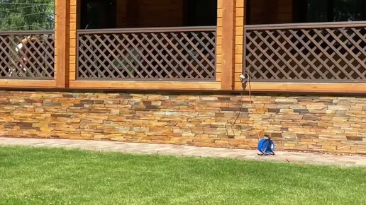 Мощение отмосток и отделка цоколя камнем. Благовещенка