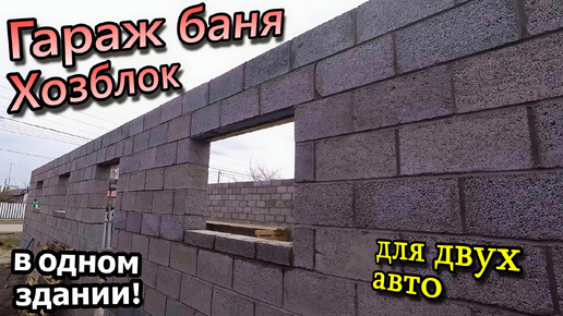 Гараж для двух авто / Тех-помещение / Баня с комнатой отдыха / Из керамзитного блока (апрель 2022)