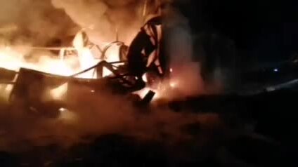 Ночью в Омске сгорела территория пункта приема вторсырья на улице 2-й Казахстанской