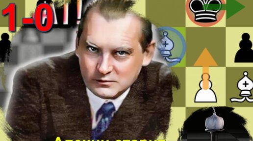 Чемпион мира Алехин нашел себе в сеансе мальчика для битья: красиво отдал ферзя и поставил мат пешкой в Лисбоне, 1941, 1-0