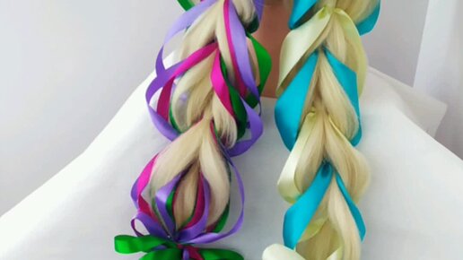 Как оформить концы длинных лент. Простой способ. Косы с лентами для девочек.