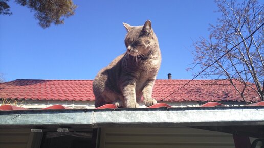 Весна пришла: кот специально залез на крышу, чтобы его сняли и поносили на ручках