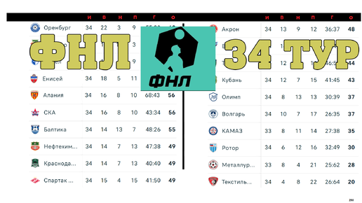 Подводим итоги 34 тура ФНЛ. Результаты. Расписание. Таблица. Текстильщик вылетел.