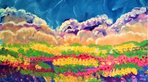 Как просто рисовать лето, цветущий луг ватными палочками.