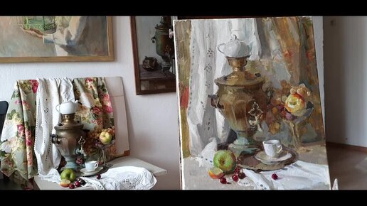 Натюрморт с самоваром. Основные этапы ведения длительной работы маслом.