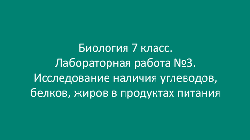 Биология 7 класс. Лабораторная работа №3. Исследование наличия углеводов, белков, жиров в продуктах питания