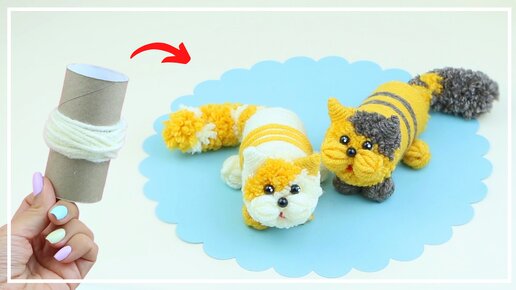 Мастер-класс: Как сделать удивительного Котика из ниток и втулки 💛
