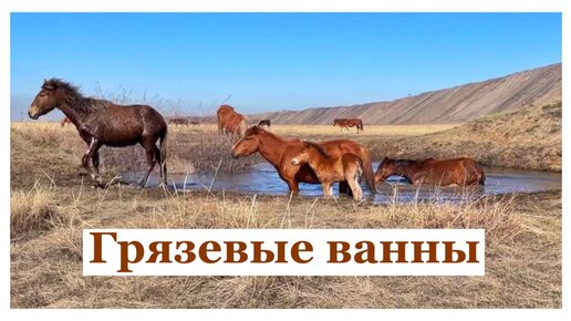 Купание лошадей в грязи. Грязевые ванны для лошадей.