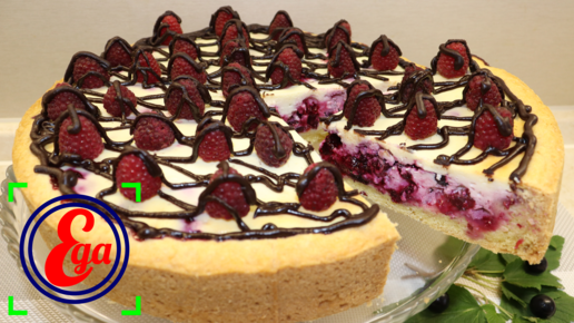 Песочный пирог с ягодами (смородиной) в сметанно-творожной заливке