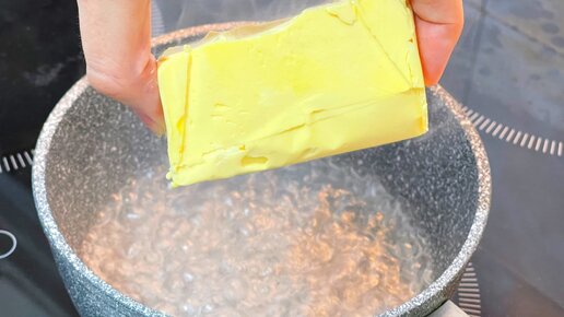 Бросаю маргарин в кипящую воду: в моей кулинарной книге это один из самых удачных рецептов (вкуснота к чаепитию за копейки)
