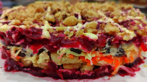Обалденный слоёный салат "Чингисхан" с курицей и свеклой, готовится всё просто, а вкус замечательный (делюсь простым рецептом)