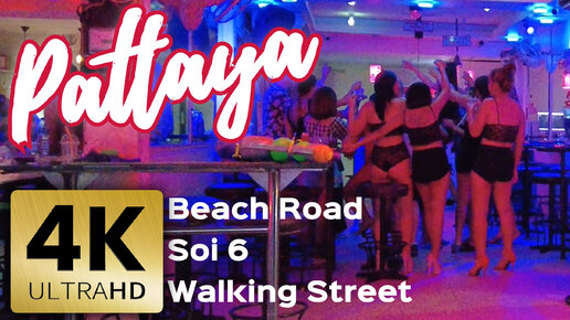 【4K】Без комментариев. Паттайя 2022. Таиланд. Прогулка по городу. Beach Road. Soi 6. Walking Street.