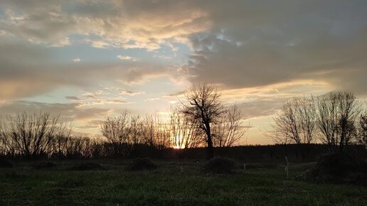 рассвет, игра света, лучи солнца, дерево ранней весной