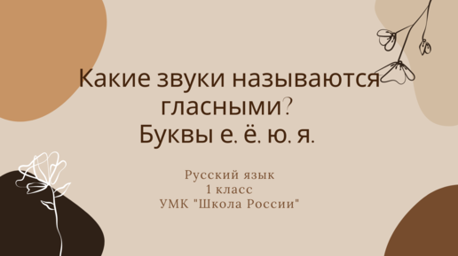 Какие звуки называются гласными? Буквы е, ё, ю, я. Урок русского языка в 1 классе.