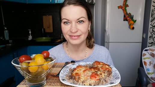 Мукбанг КОТЛЕТЫ с помидорами под сыром/ГРЕЧКА/СОЛЕНЬЯ