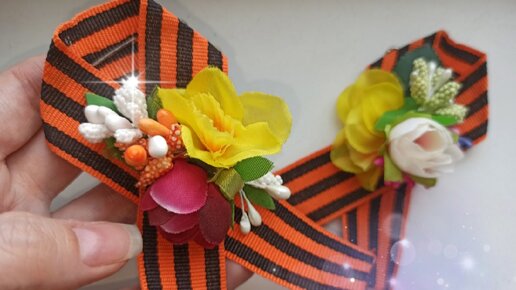 Брошь на 9 мая из георгиевской ленточки своими руками. Бесплатный МК