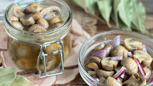 Маринованные шампиньоны. Эти грибы можно приобрести круглый год, и приготовить вот такую вкусную закуску за 15 минут.