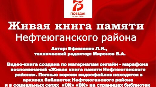 "Живая книга памяти Нефтеюганского района" видео книга воспоминаний