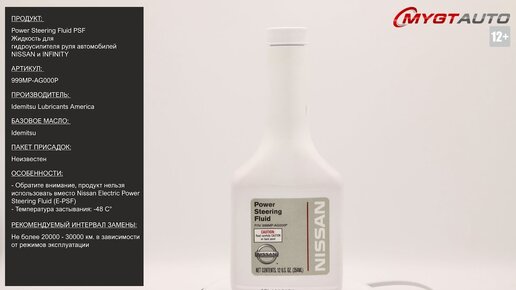 Жидкость гидроусилителя руля Nissan и Infinity Power Steering Fluid PSF 999MP-AG000P #ANTON_MYGT