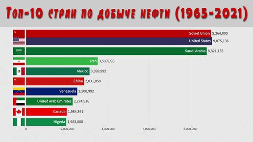 Топ-10 стран по добыче нефти. Инфографика с 1965 года