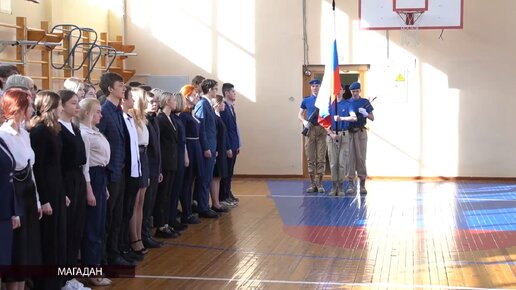 В Магаданской гимназии №13 подняли флаг и исполнили гимн России