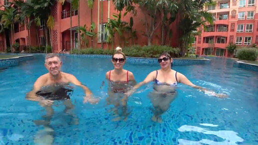 Родители в Таиланде - бассейн влог, папа учится плавать, после инсульта