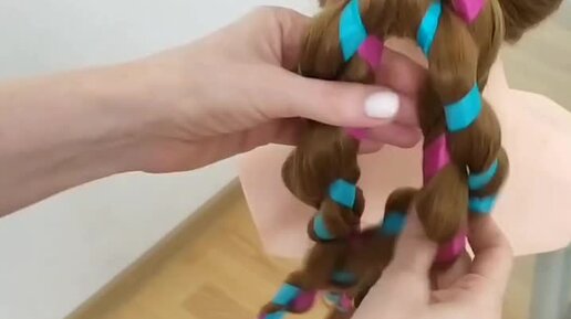 Коса Жгут с лентами. Видео причёски для девочки. Быстрый способ заплести.