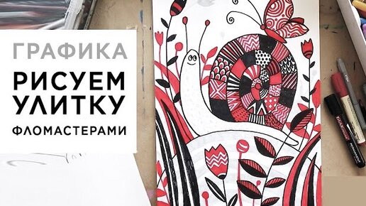 Рисуем улитку тремя цветами: черным, красным и серым. Урок по графике для детей и взрослых.
