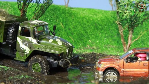 Мультик про машинки. Маша и медведь катаются по грязи. МанкиМульт