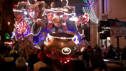 Как весело на Карнавале в Сицилии. Куклы выше дома ездят по улицам города Ачиреале (Acireale)