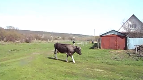 Коровы идут на обед домой.