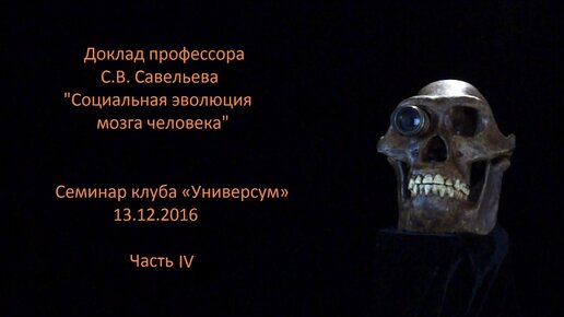 С.В. Савельев с докладом «Социальная эволюция мозга», Часть IV /13.12.2016/